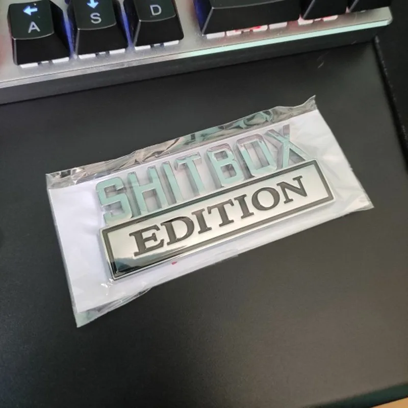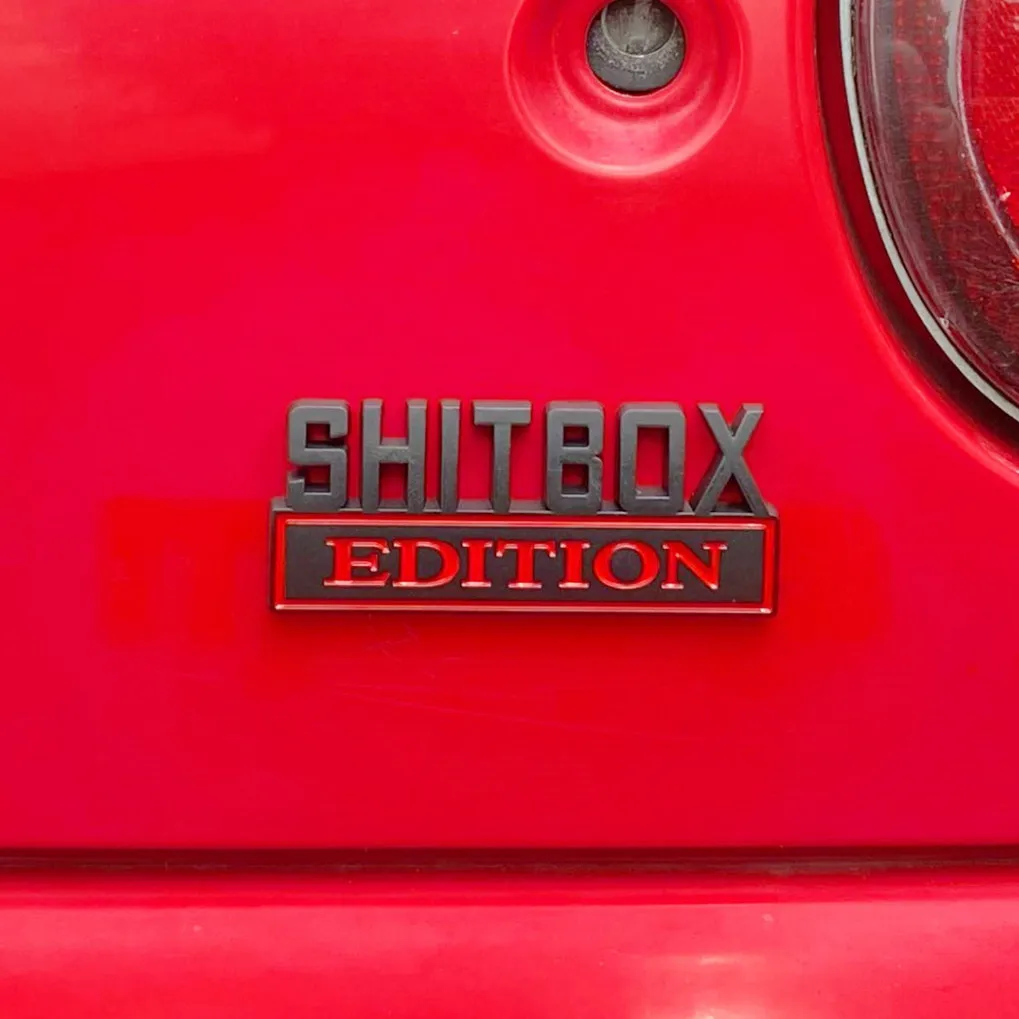 Show off your sense of humor with this “Shitbox Edition” 3D emblem badge. Perfect for proudly labeling your daily beater, project car, or any ride with character. Made from durable ABS material, it withstands sun, rain, and road grime. The bold 3D lettering ensures everyone knows your car is one of a kind. Its self-adhesive backing makes installation quick and easy—no tools needed. Stick it on your trunk, side panel, or anywhere you want a laugh. Available in three colors, it adds a cheeky touch to any vehicle. Lightweight yet tough, it stays put through all your adventures. This badge makes a great gift for car enthusiasts who don’t take things too seriously. Own the “Shitbox Edition” title with pride and let your car’s personality shine.