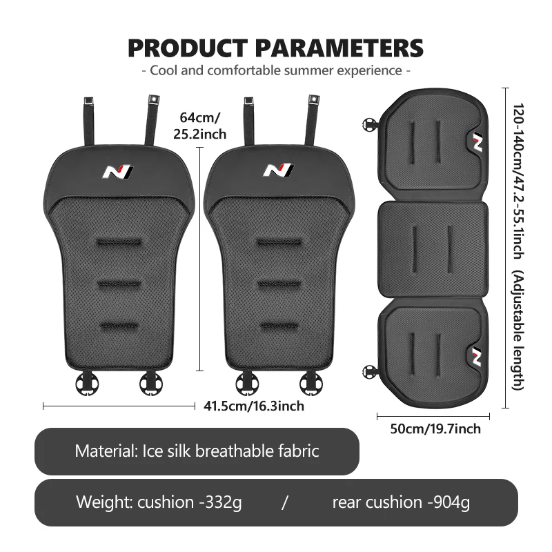These ice silk car seat covers provide a cool and comfortable driving experience. The breathable fabric helps reduce heat buildup, making them ideal for summer use. They protect your original seats from scratches, spills, and daily wear. Designed with a backrest cushion and rear seat mat, they offer full coverage and comfort. The sleek design enhances your car’s interior with a stylish upgrade. Suitable for Hyundai models such as Sonata, i30, i20, Tucson, Elantra, and Kona N Line, they ensure a precise fit. Universal compatibility also makes them usable in many other cars and SUVs. Installation is quick and easy with straps and hooks for a secure hold. The lightweight material is easy to clean and maintain. Keep your car interior fresh and cool with these ice silk seat covers.
